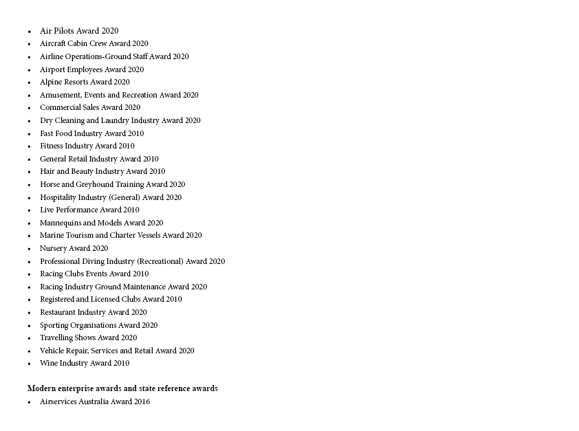 - Group 3 – modern awards covering industry sectors which have been most adversely affected by the pandemic and includes the aviation and hospitality industries among others. The new minimum rates of pay for Group 3 Awards will take effect from the first full pay period on or after 1 February 2021.